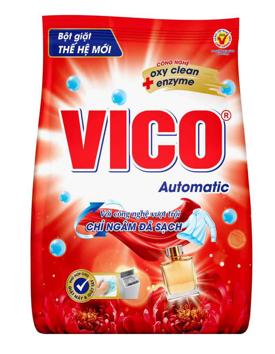 Bột giặt Vico Automatic với công nghệ Oxy clean enzyem vượt trội "Chỉ ngâm đã sạch" với 5 tác động :