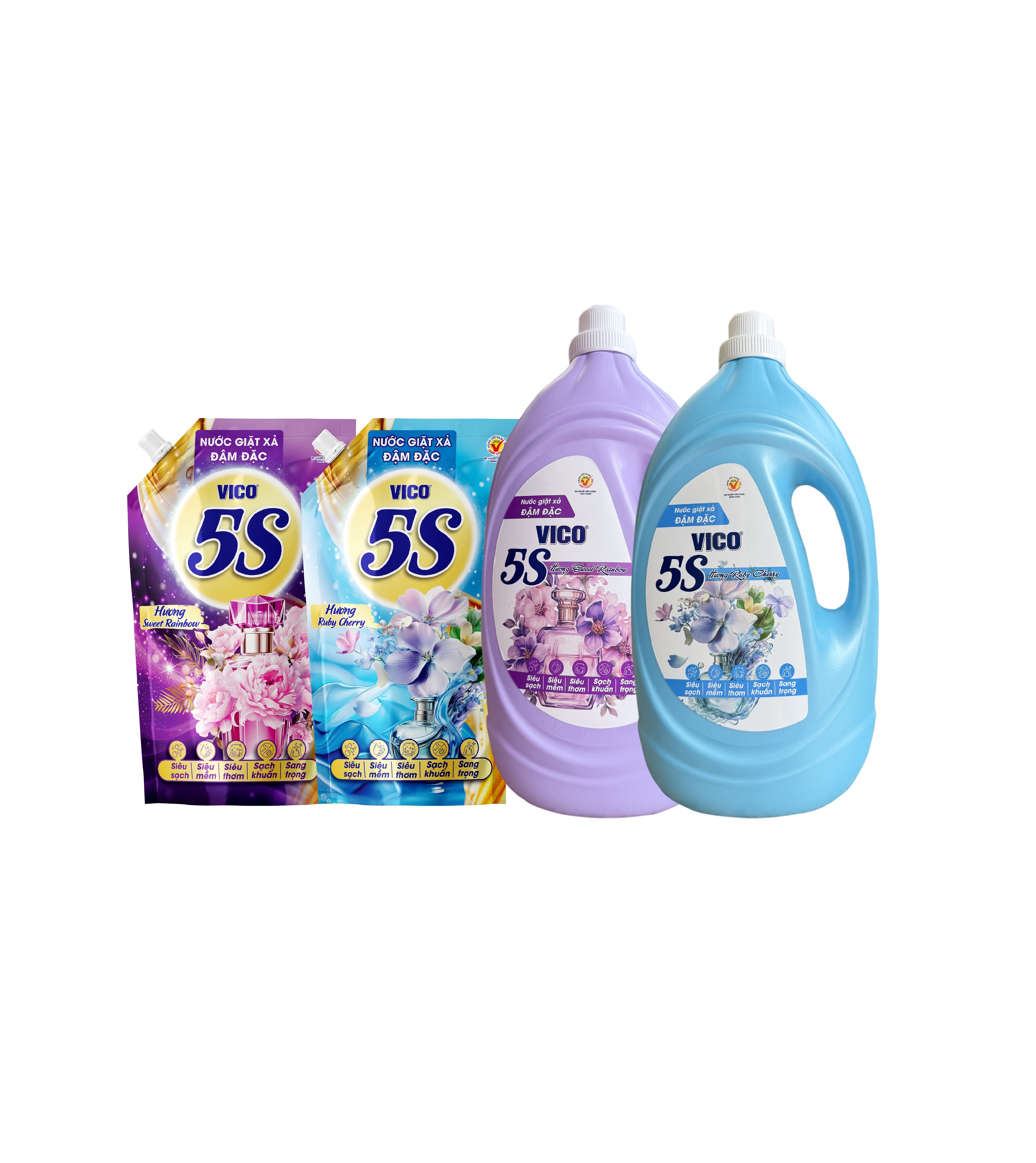 Nước giặt xả VICO 5S: siêu sạch, siêu mềm, siêu thơm, sạch khuẩn, sang trọng